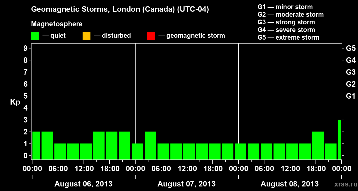 Geomagnetic storms in London (Canada) — Aug 08, 2013