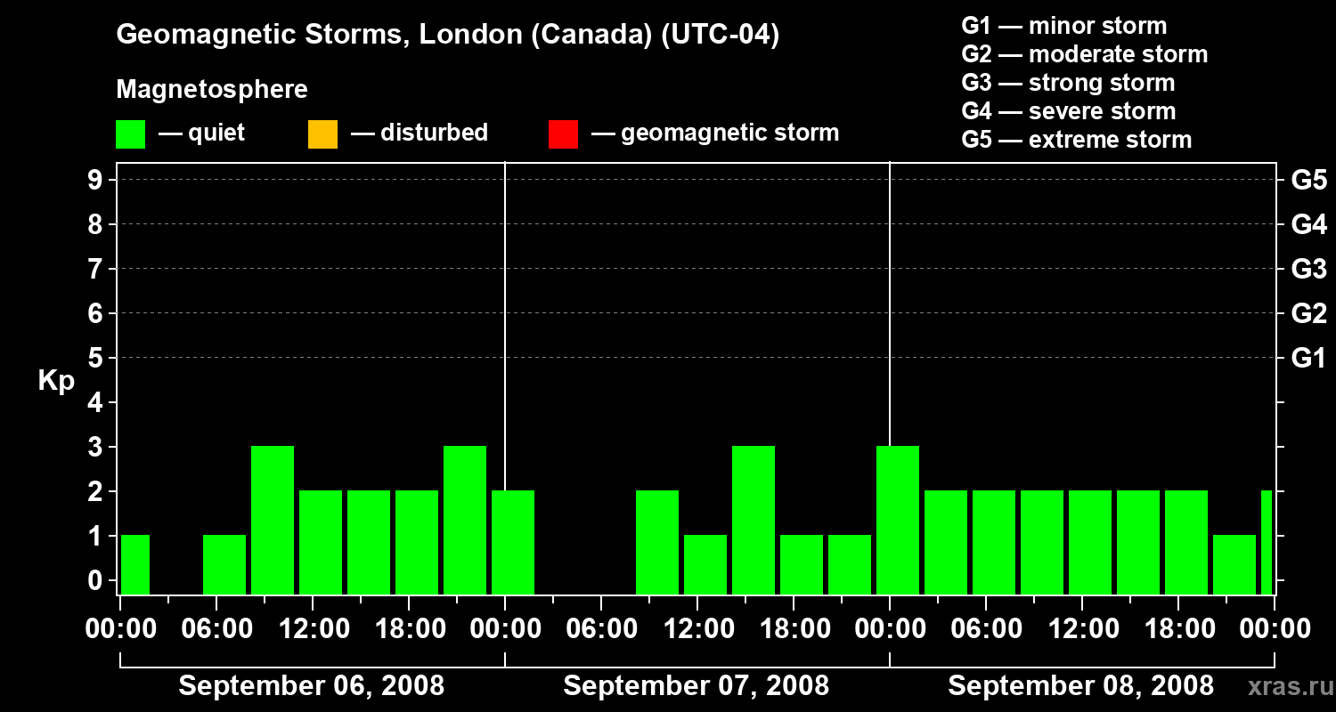 Geomagnetic storms in London (Canada) — Sep 08, 2008