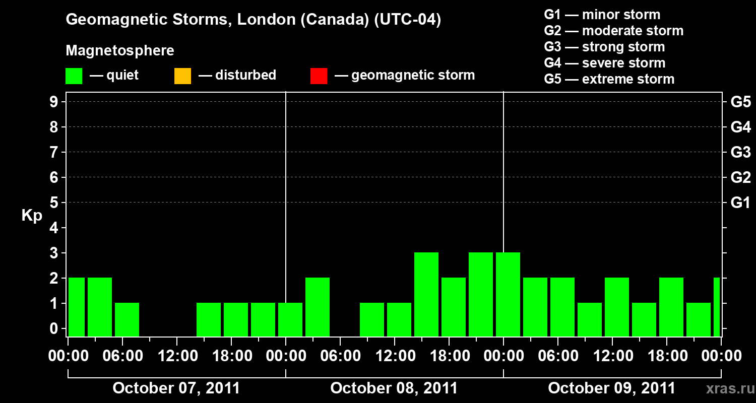Geomagnetic storms in London (Canada) — Oct 09, 2011