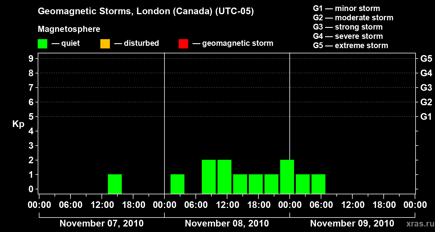 Geomagnetic storms in London (Canada) — Nov 09, 2010