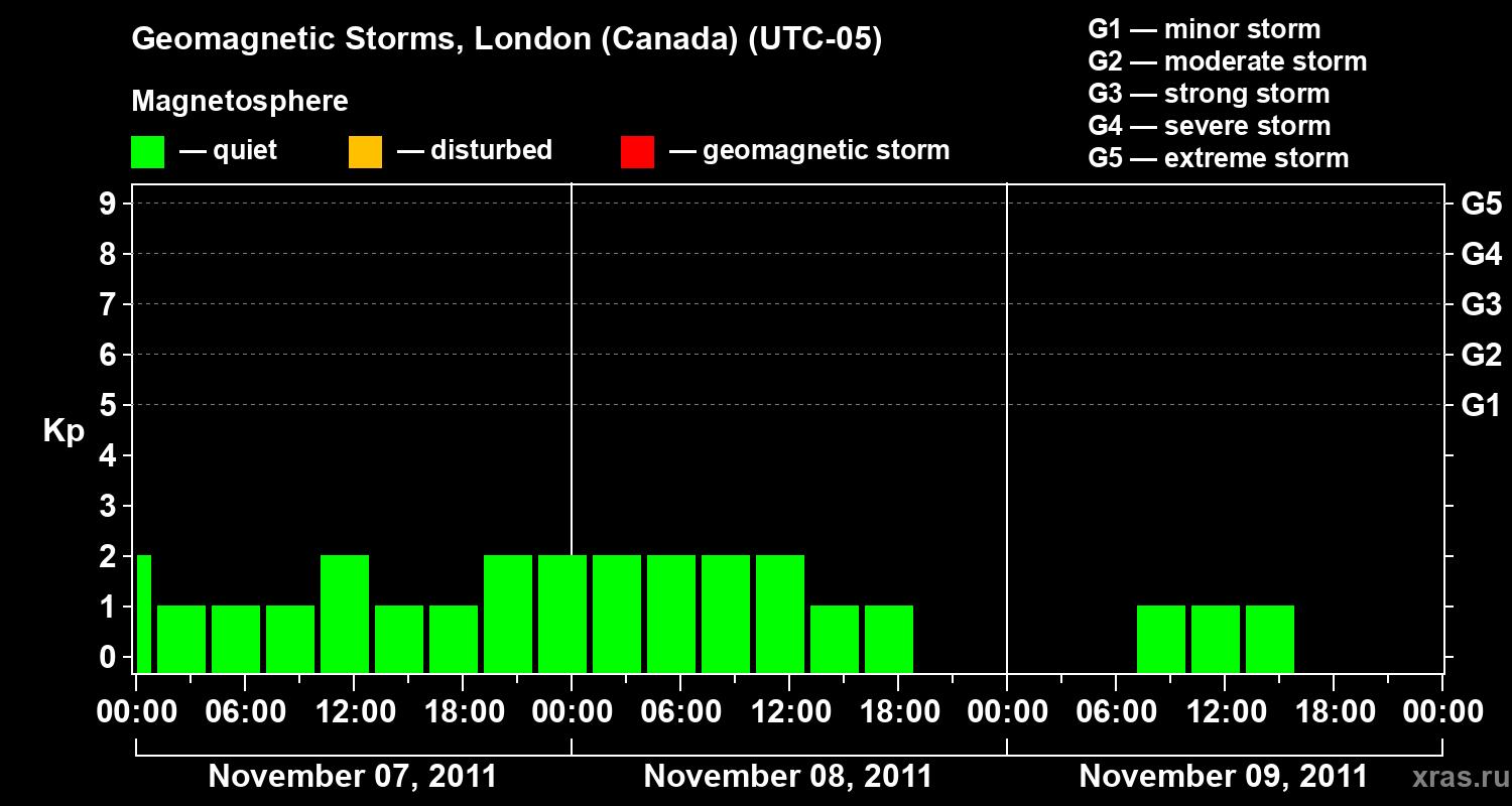 Geomagnetic storms in London (Canada) — Nov 09, 2011