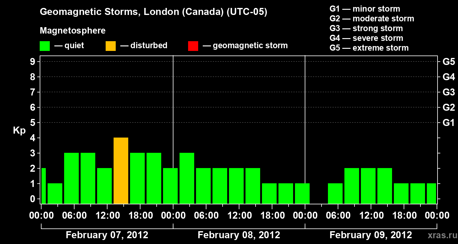 Geomagnetic storms in London (Canada) — Feb 09, 2012