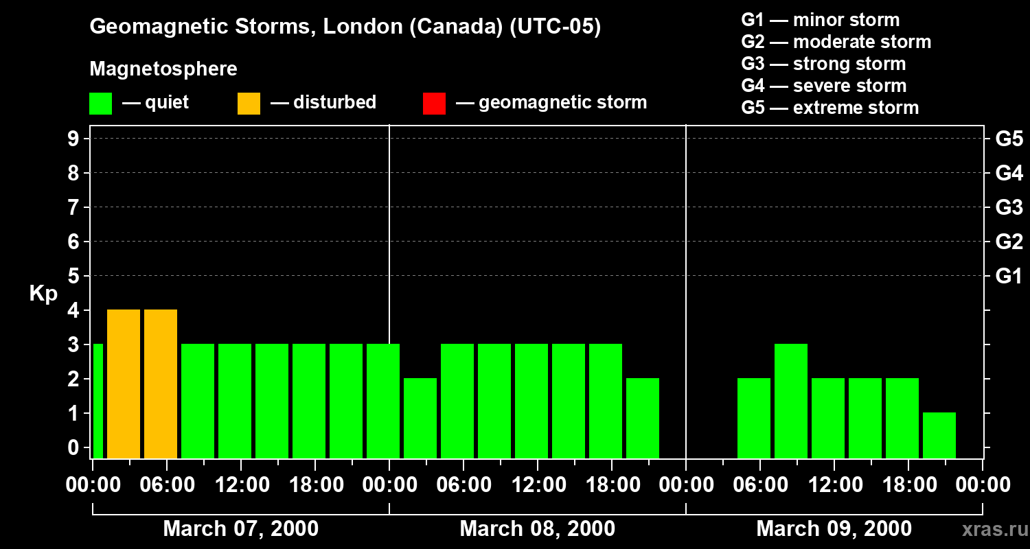 Geomagnetic storms in London (Canada) — Mar 09, 2000