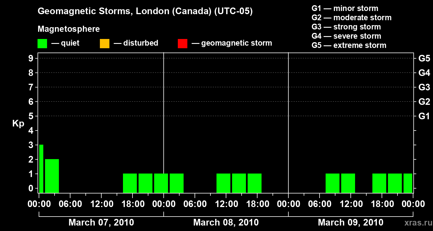 Geomagnetic storms in London (Canada) on Mar 09, 2010