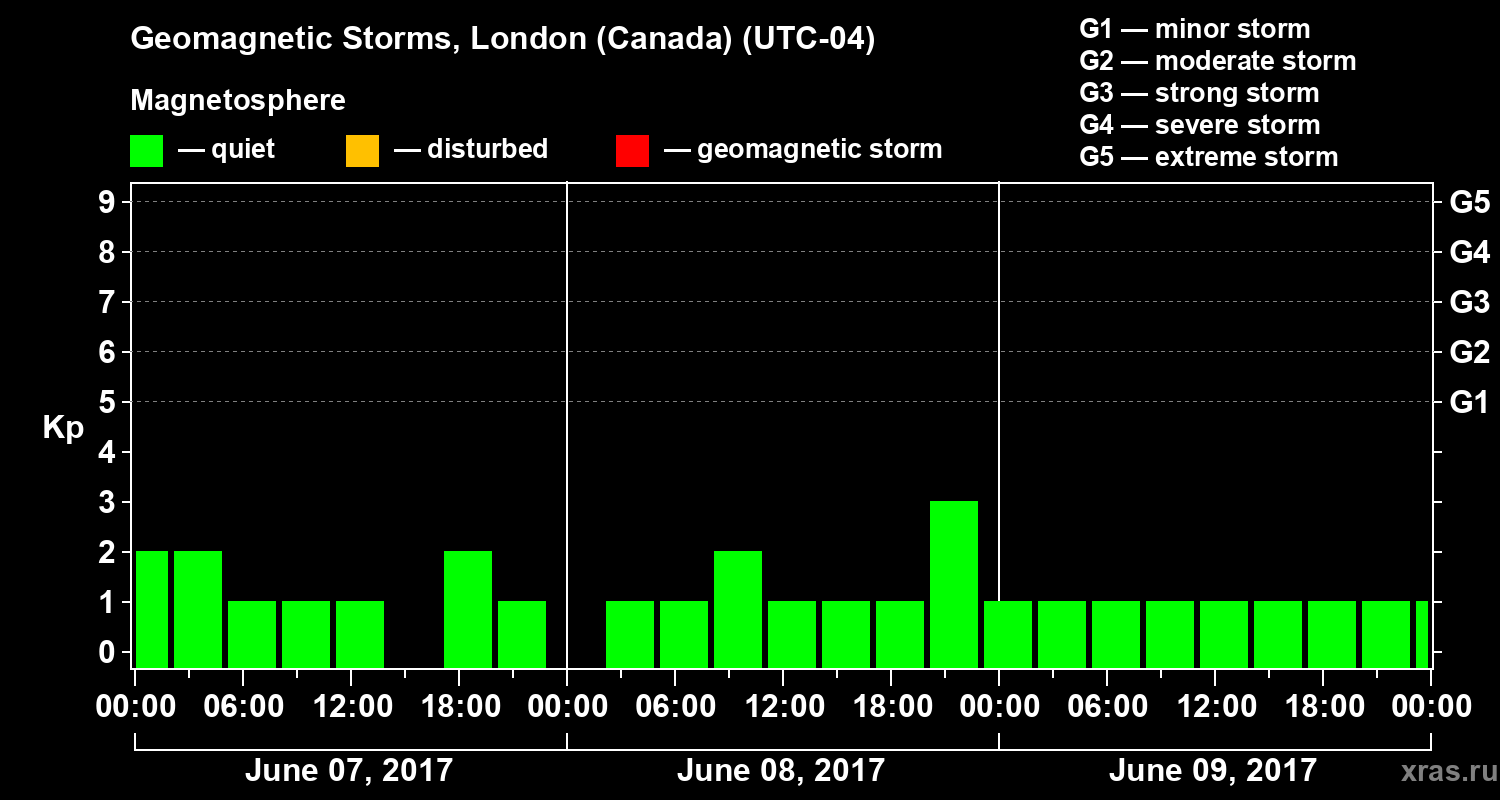 Geomagnetic storms in London (Canada) — Jun 09, 2017
