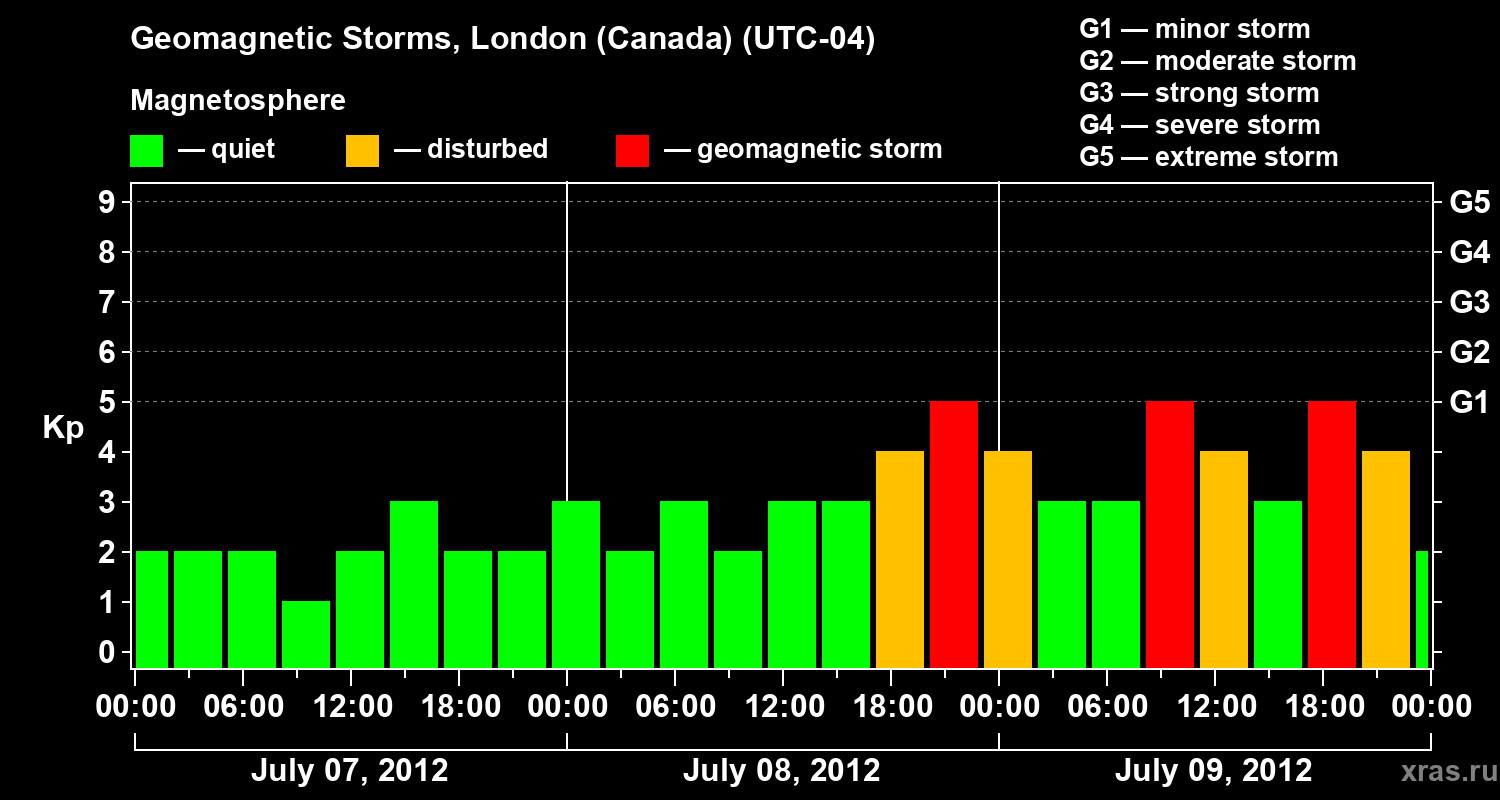 Geomagnetic storms in London (Canada) — Jul 09, 2012