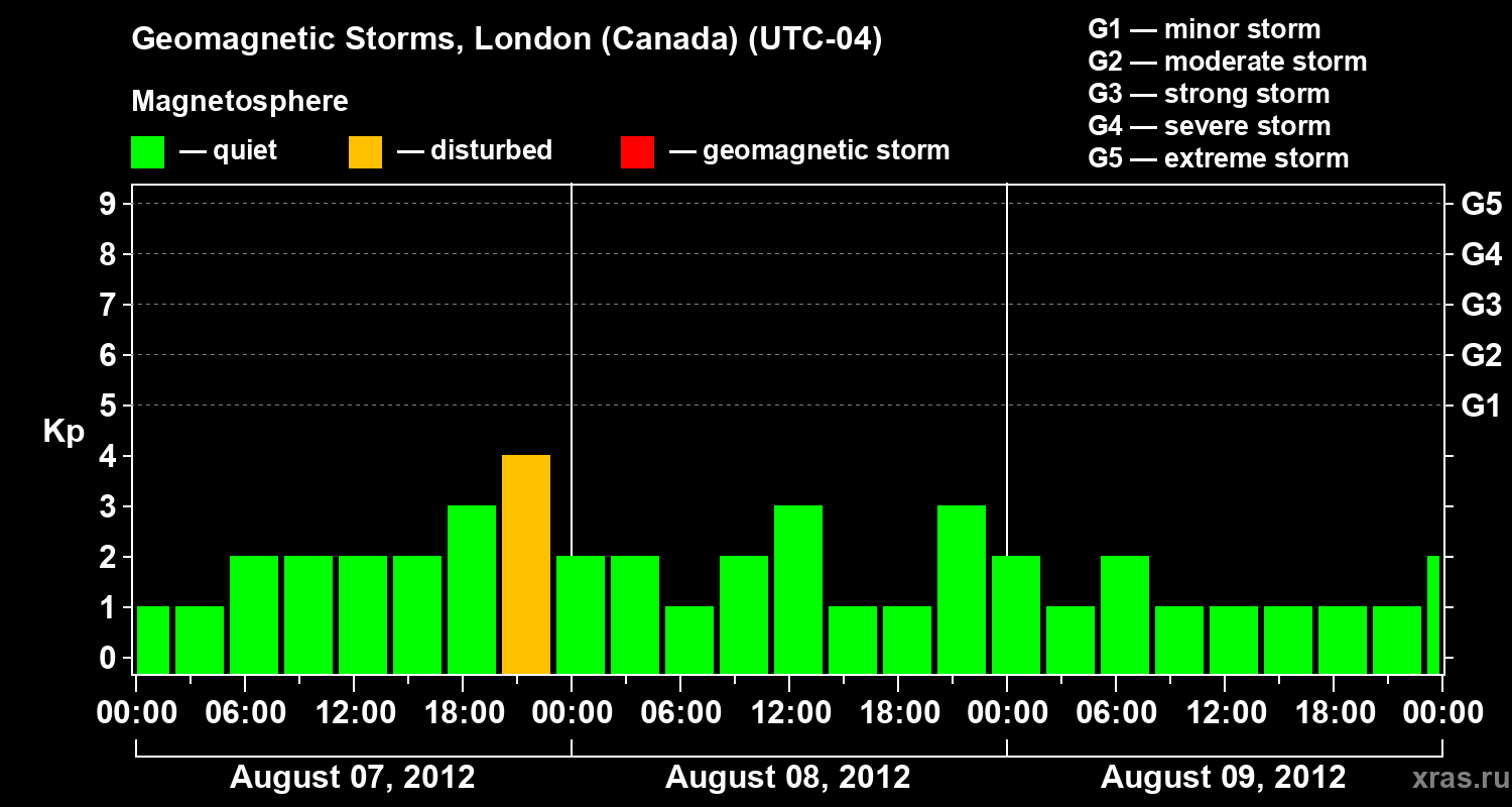 Geomagnetic storms in London (Canada) — Aug 09, 2012
