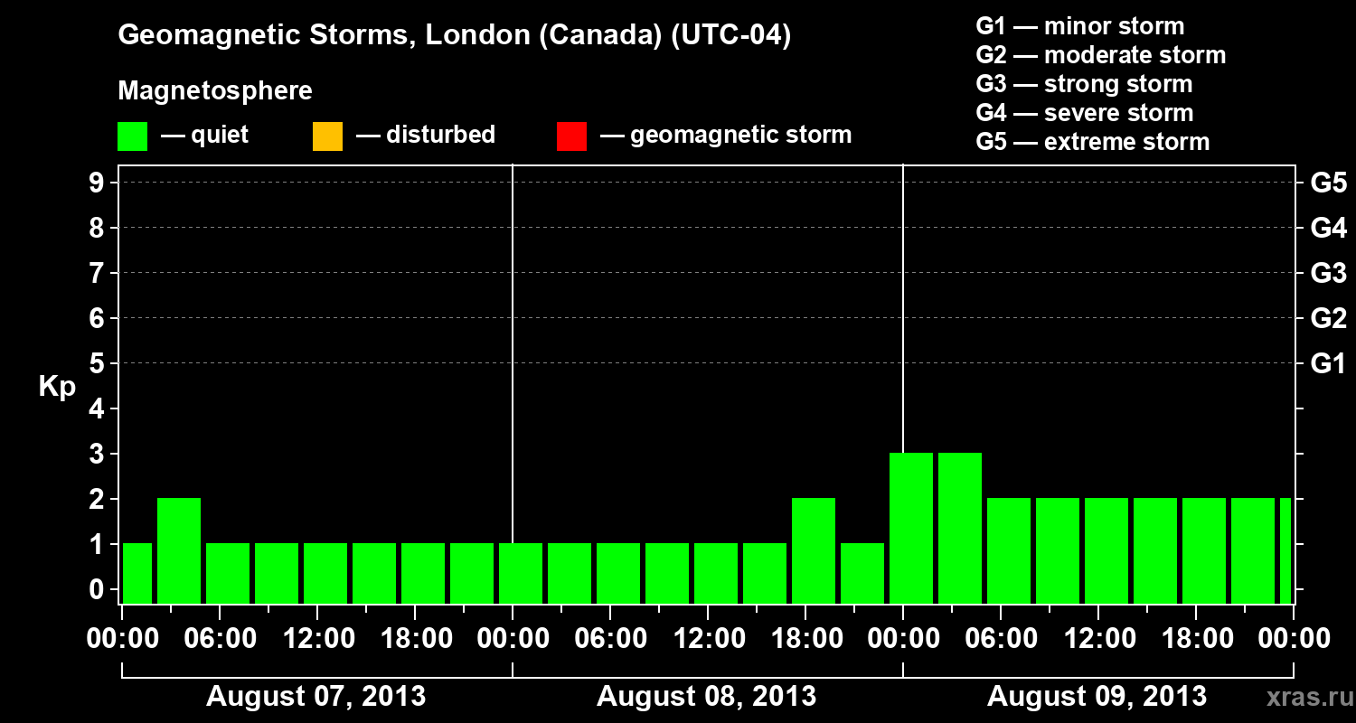 Geomagnetic storms in London (Canada) — Aug 09, 2013