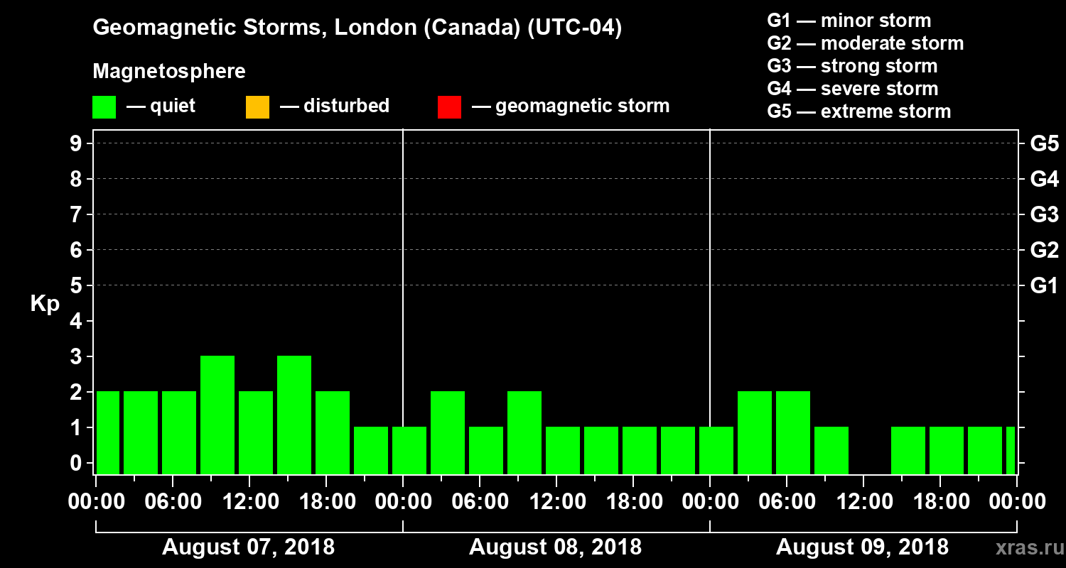 Geomagnetic storms in London (Canada) — Aug 09, 2018