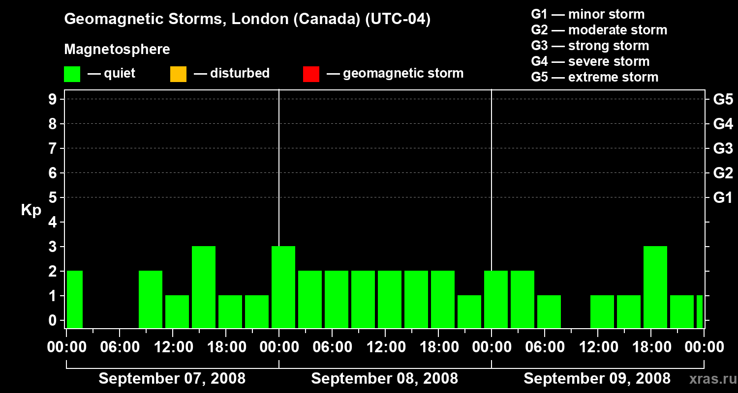 Geomagnetic storms in London (Canada) — Sep 09, 2008