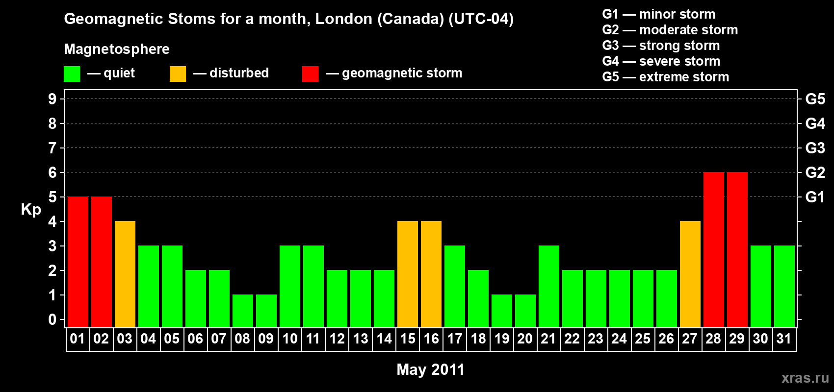 List of magnetic storms in May 2011