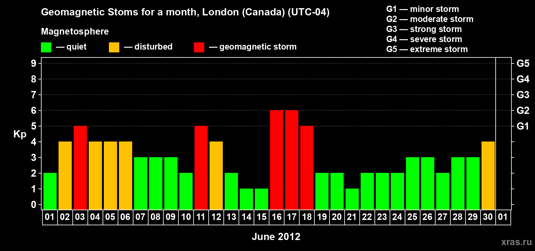 List of magnetic storms in June 2012