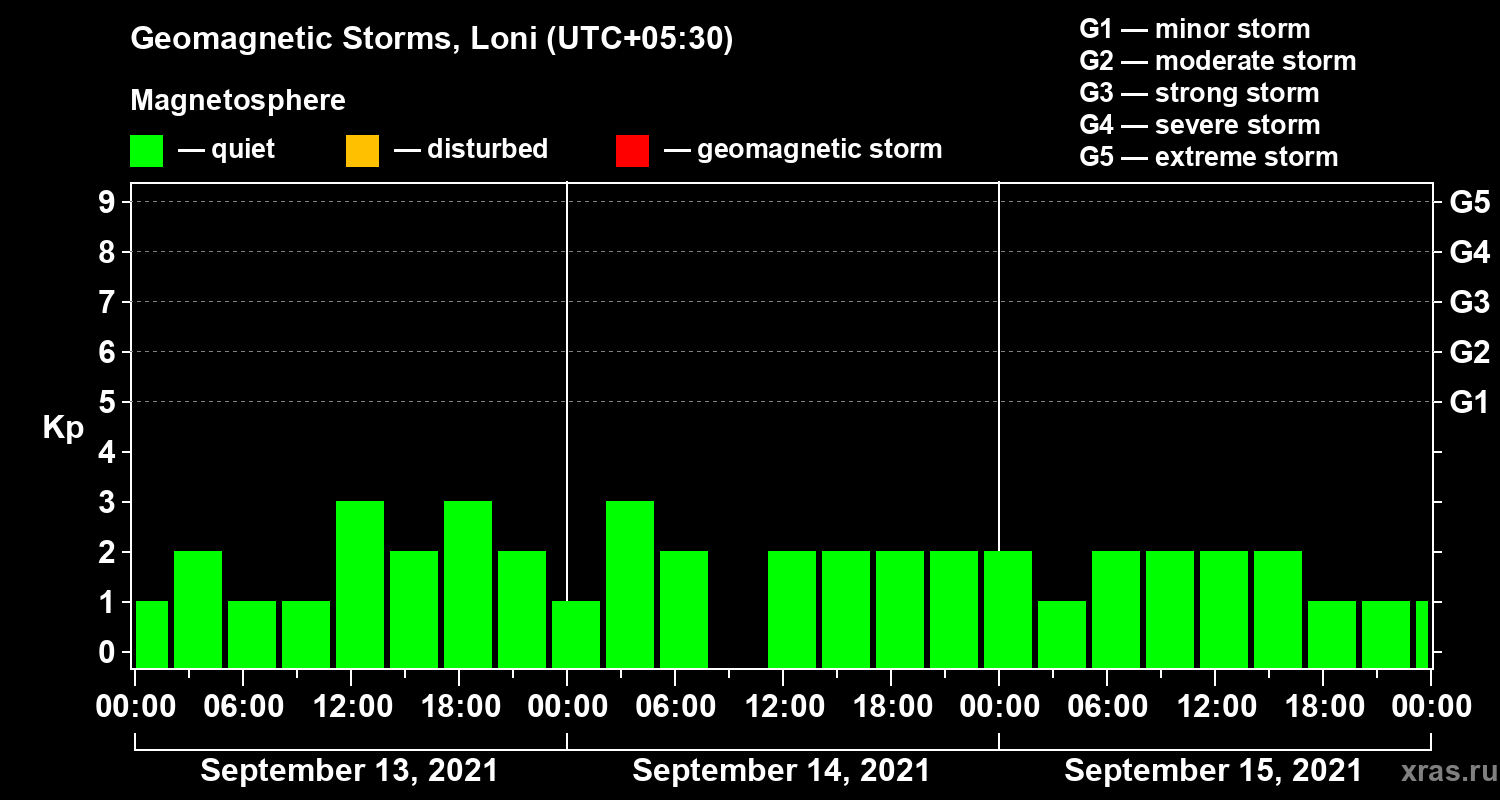 Geomagnetic storms in Loni on Sep 15, 2021