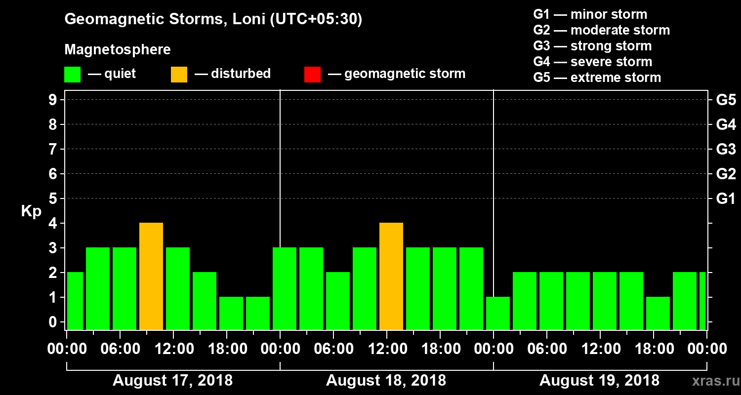 Changes in the geomagnetic index Kp from August 17 to 19, 2018 for mid latitudes