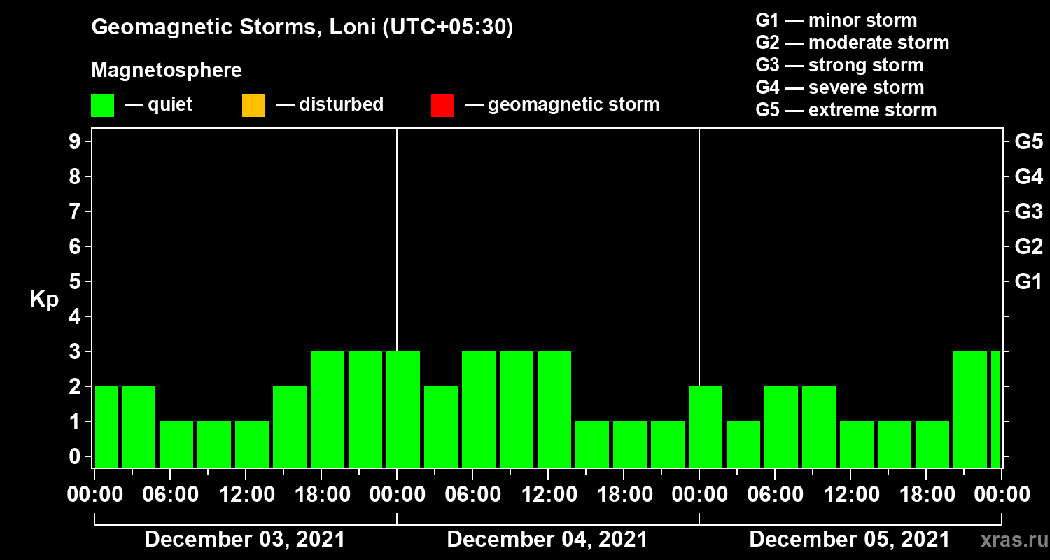 Changes in the geomagnetic index Kp from December 3 to 5, 2021 for mid latitudes
