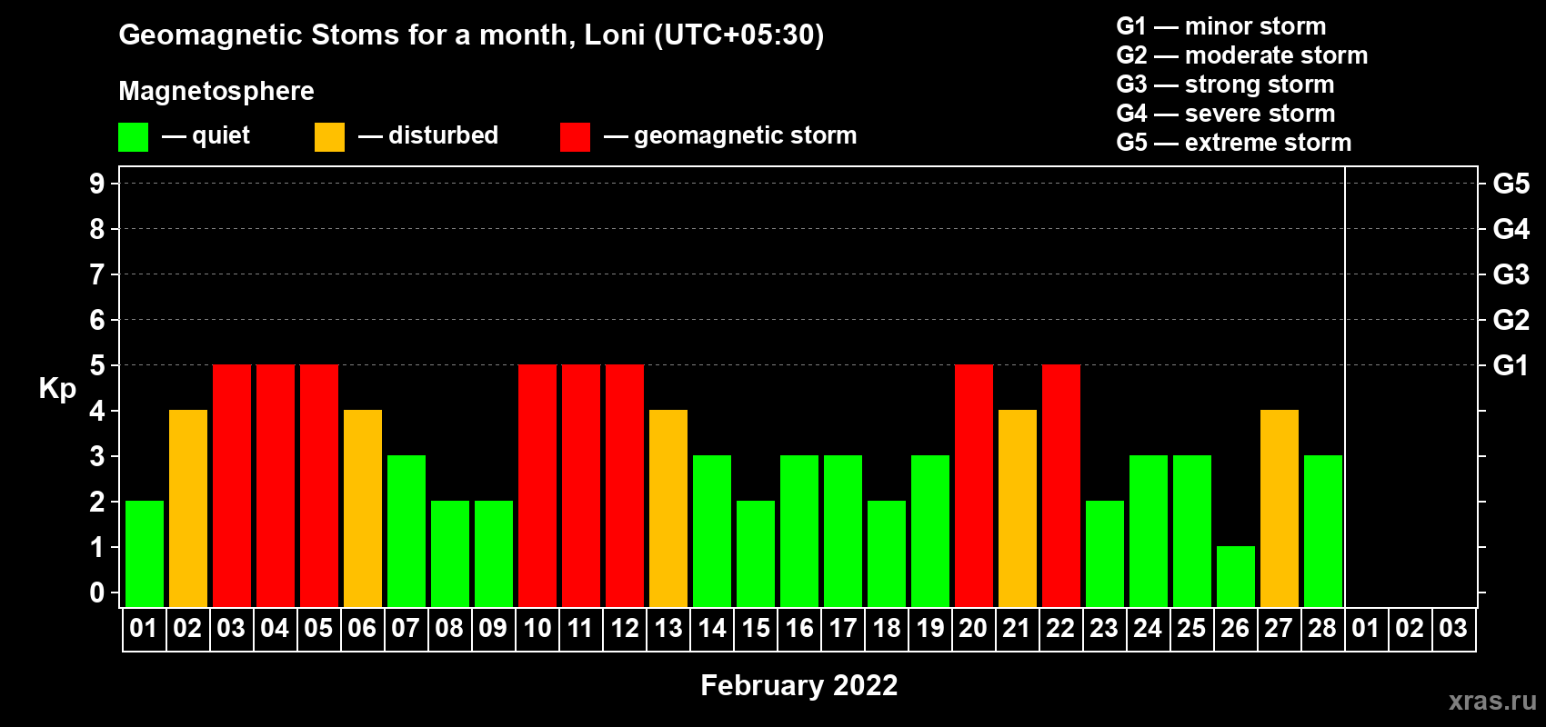 List of magnetic storms in February 2022