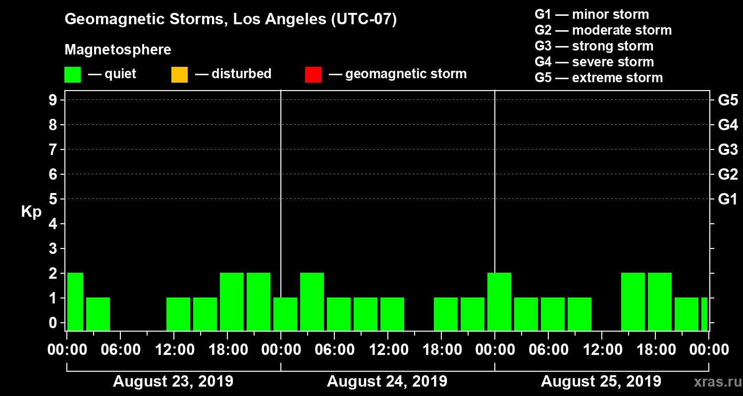 Geomagnetic storms in Los Angeles — Aug 25, 2019
