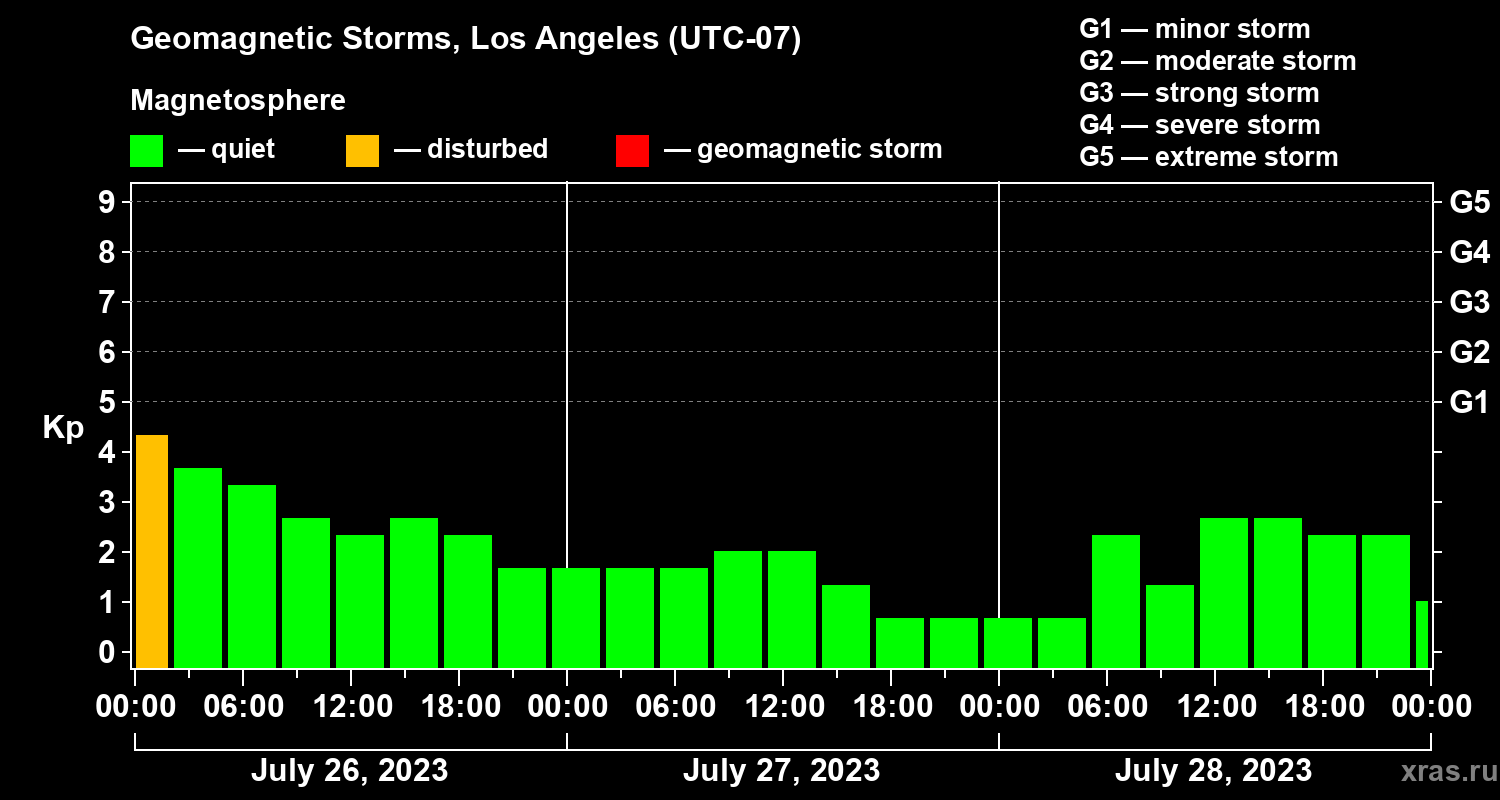 Geomagnetic storms in Los Angeles — Jul 28, 2023