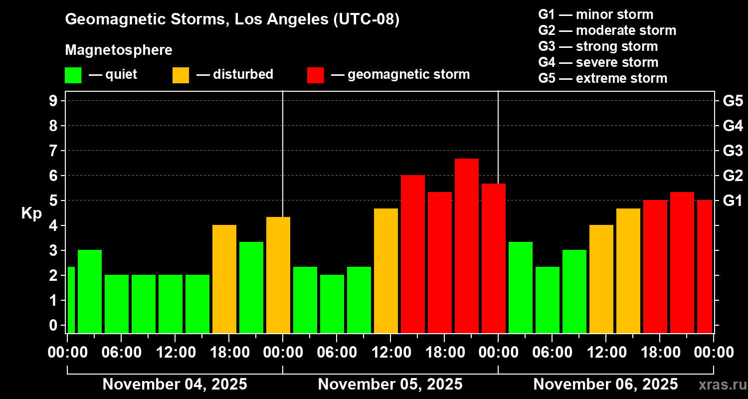 Geomagnetic storms in Los Angeles — Nov 06, 2025