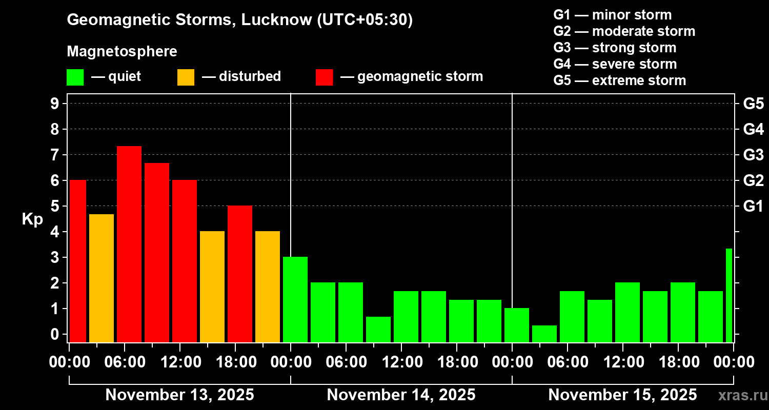 Geomagnetic storms in Lucknow in November 2025