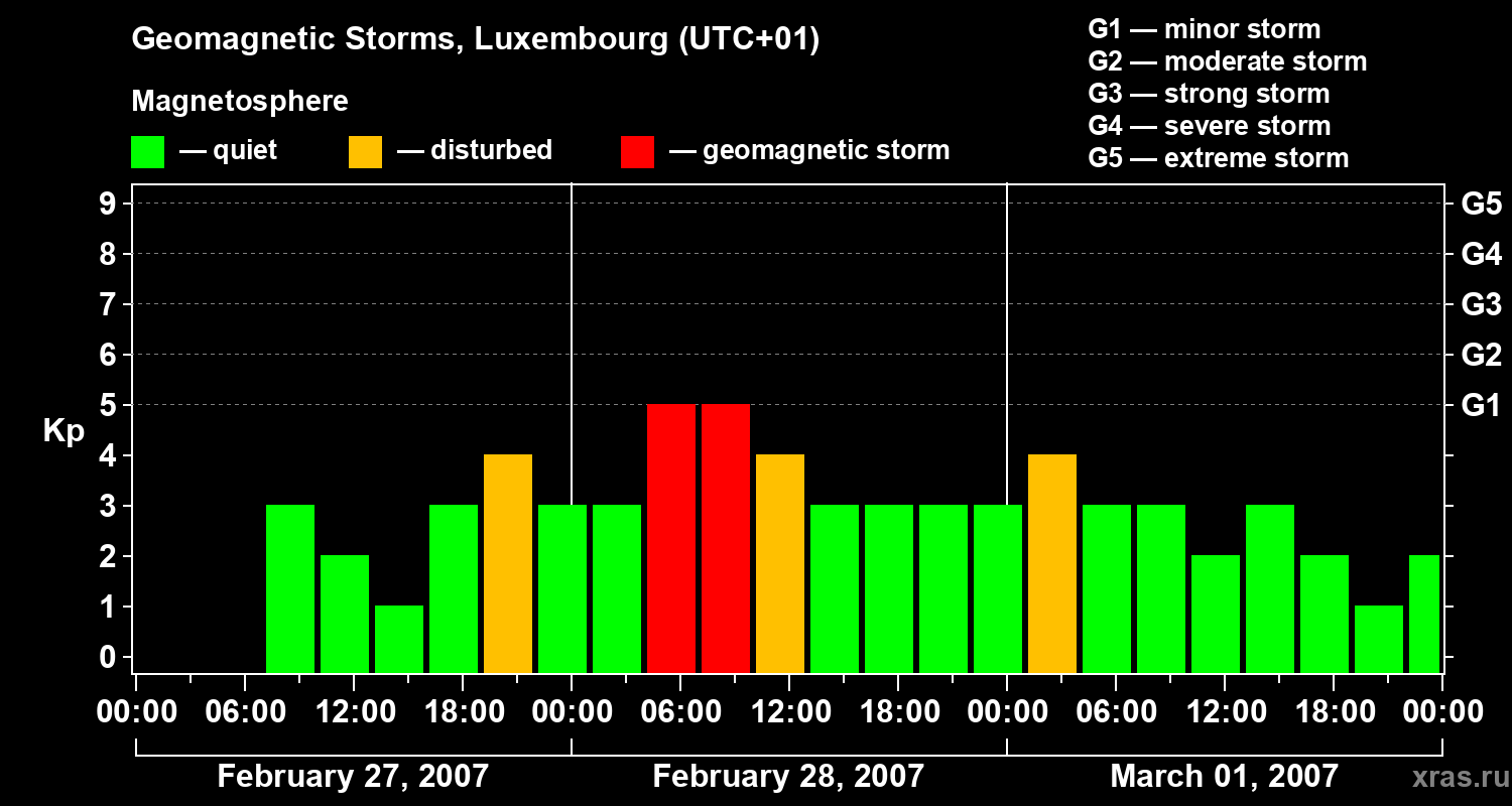 Geomagnetic storms in Luxembourg on Mar 01, 2007