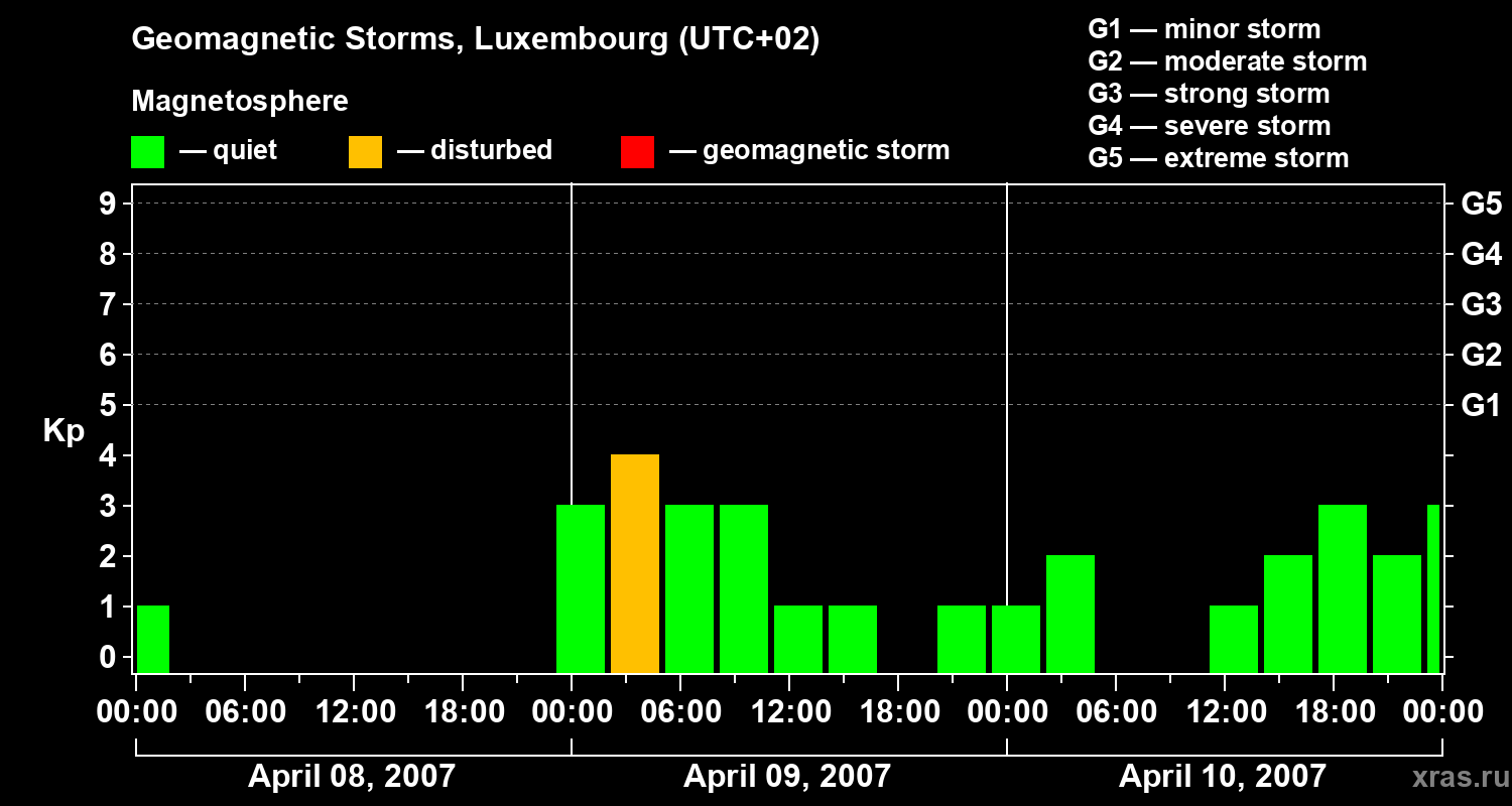 Geomagnetic storms in Luxembourg — Apr 10, 2007
