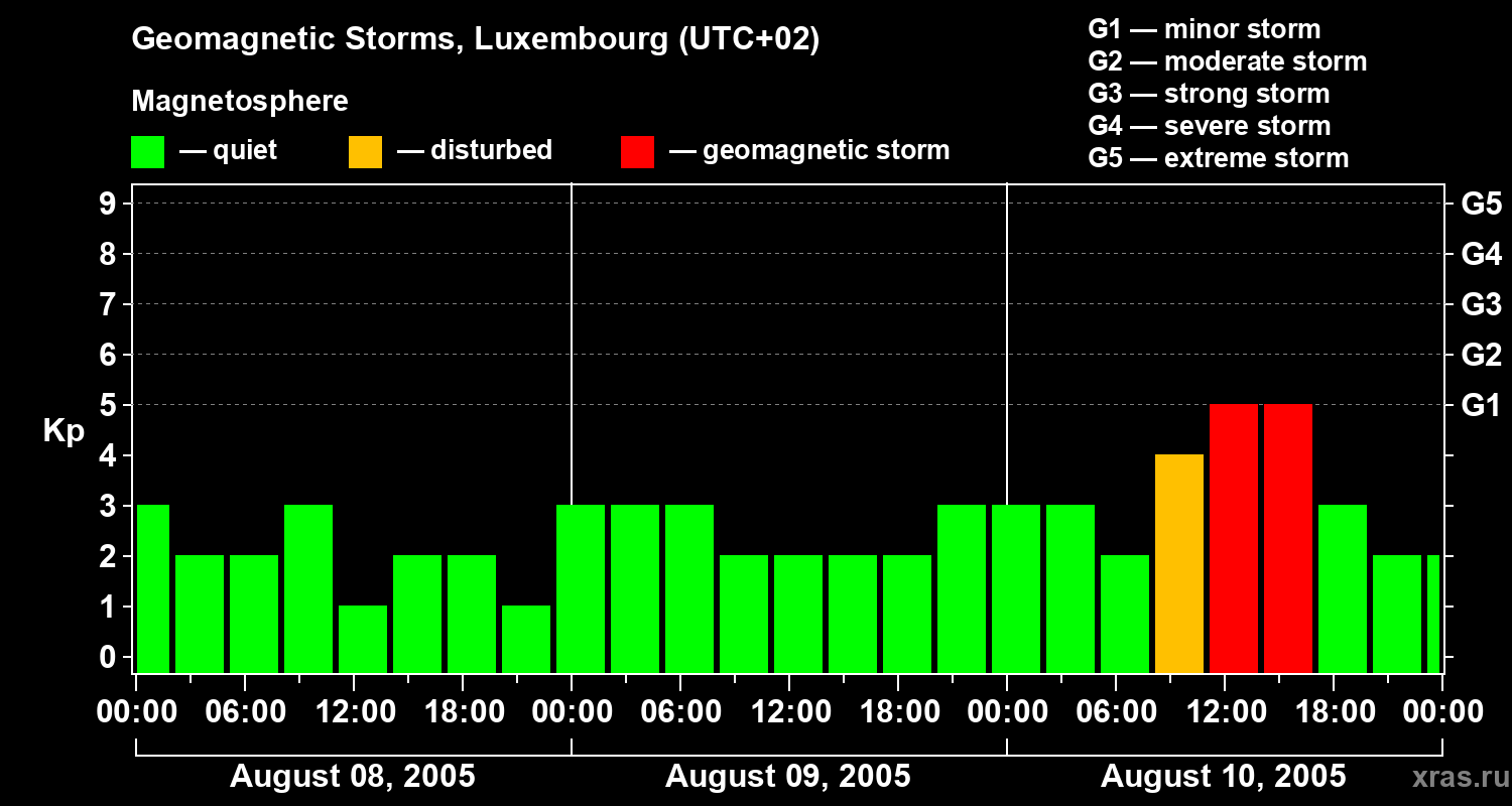 Geomagnetic storms in Luxembourg — Aug 10, 2005