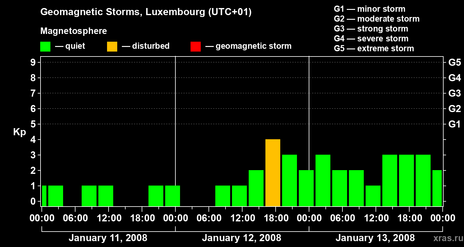 Geomagnetic storms in Luxembourg — Jan 13, 2008