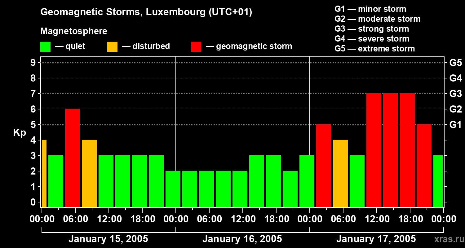 Geomagnetic storms in Luxembourg on Jan 17, 2005