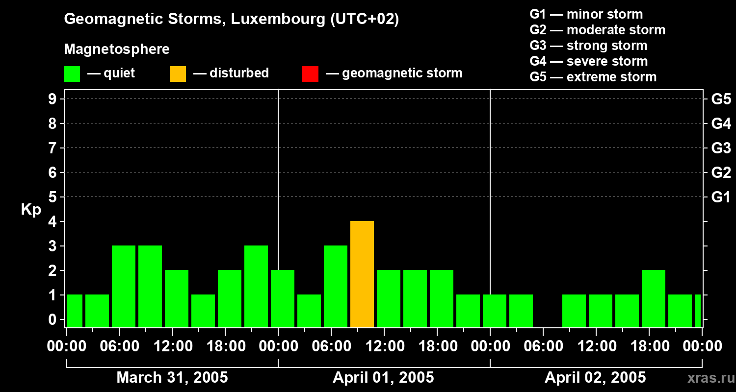 Geomagnetic storms in Luxembourg — Apr 02, 2005