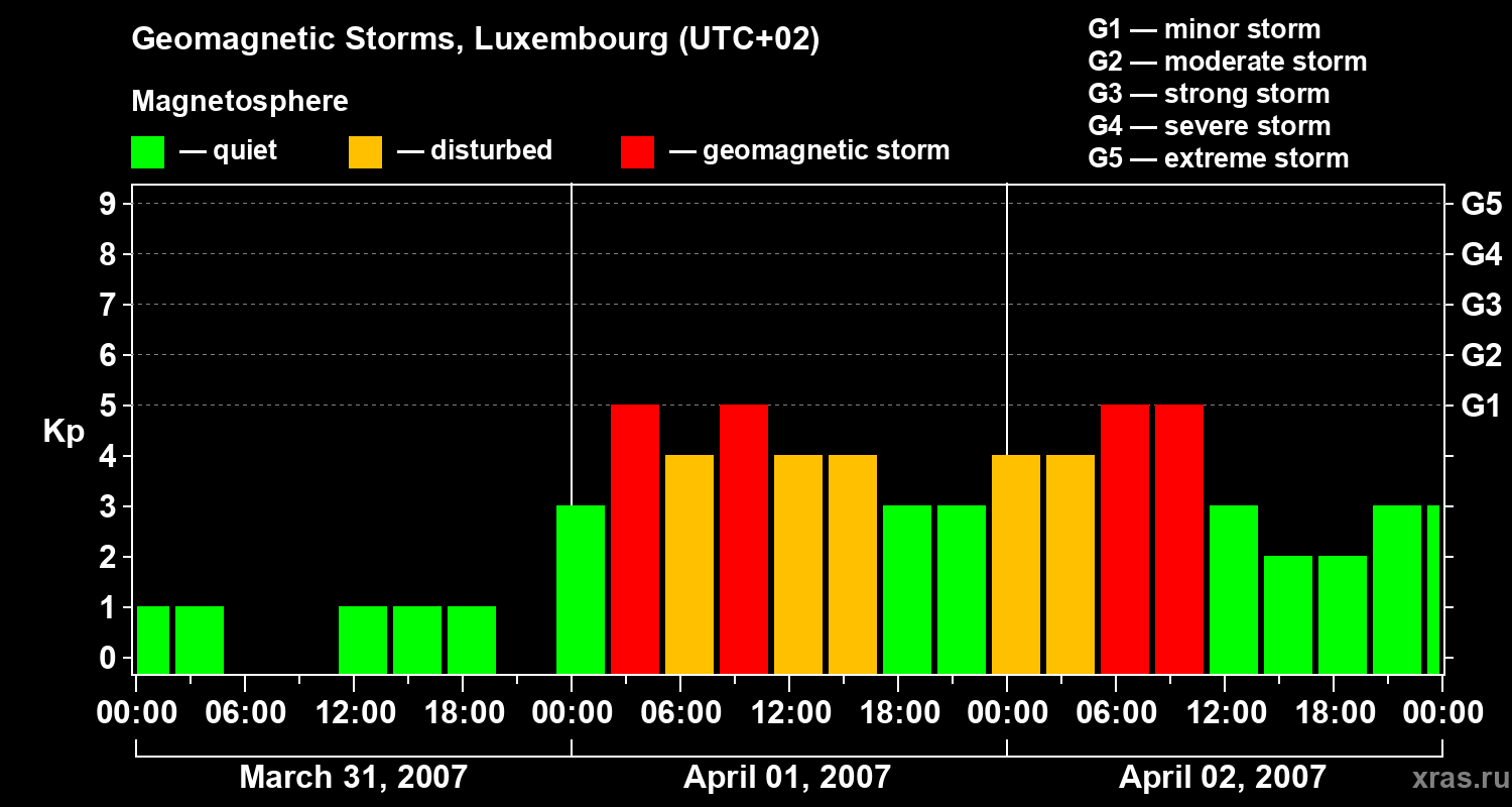 Geomagnetic storms in Luxembourg — Apr 02, 2007