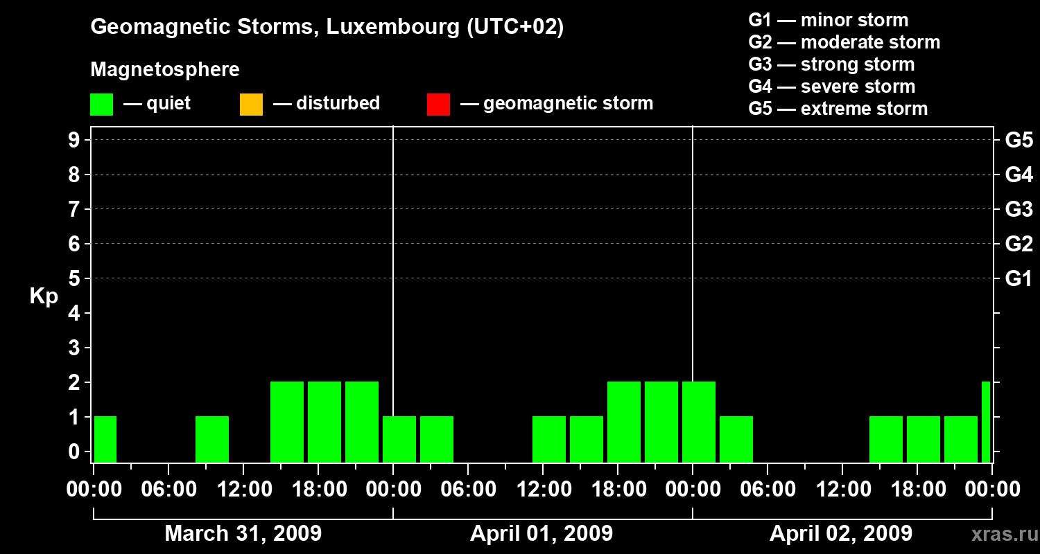 Geomagnetic storms in Luxembourg — Apr 02, 2009