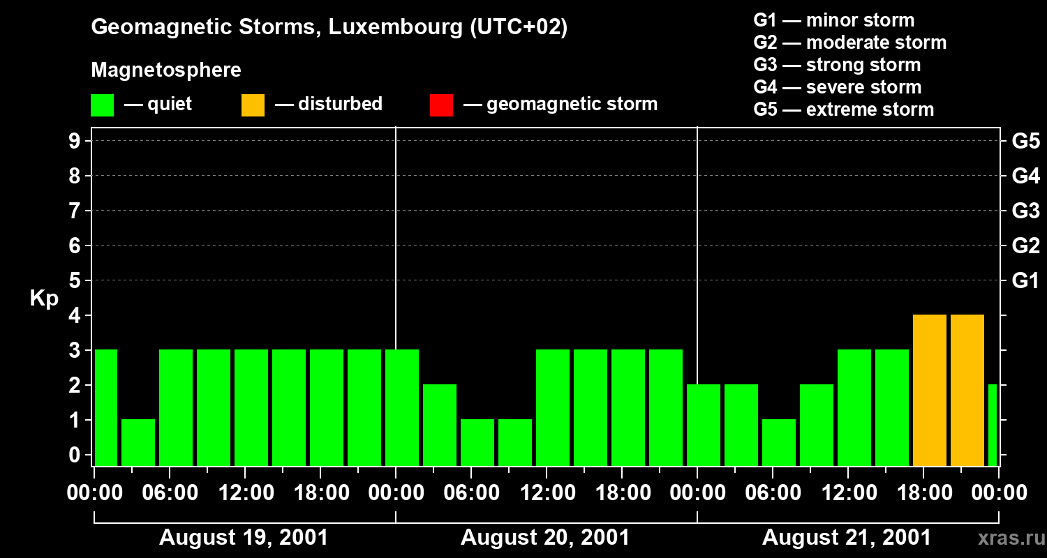 Geomagnetic storms in Luxembourg on Aug 21, 2001