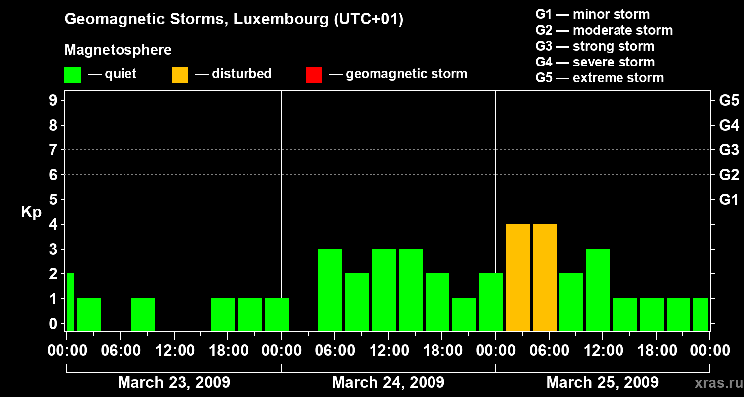 Geomagnetic storms in Luxembourg — Mar 25, 2009