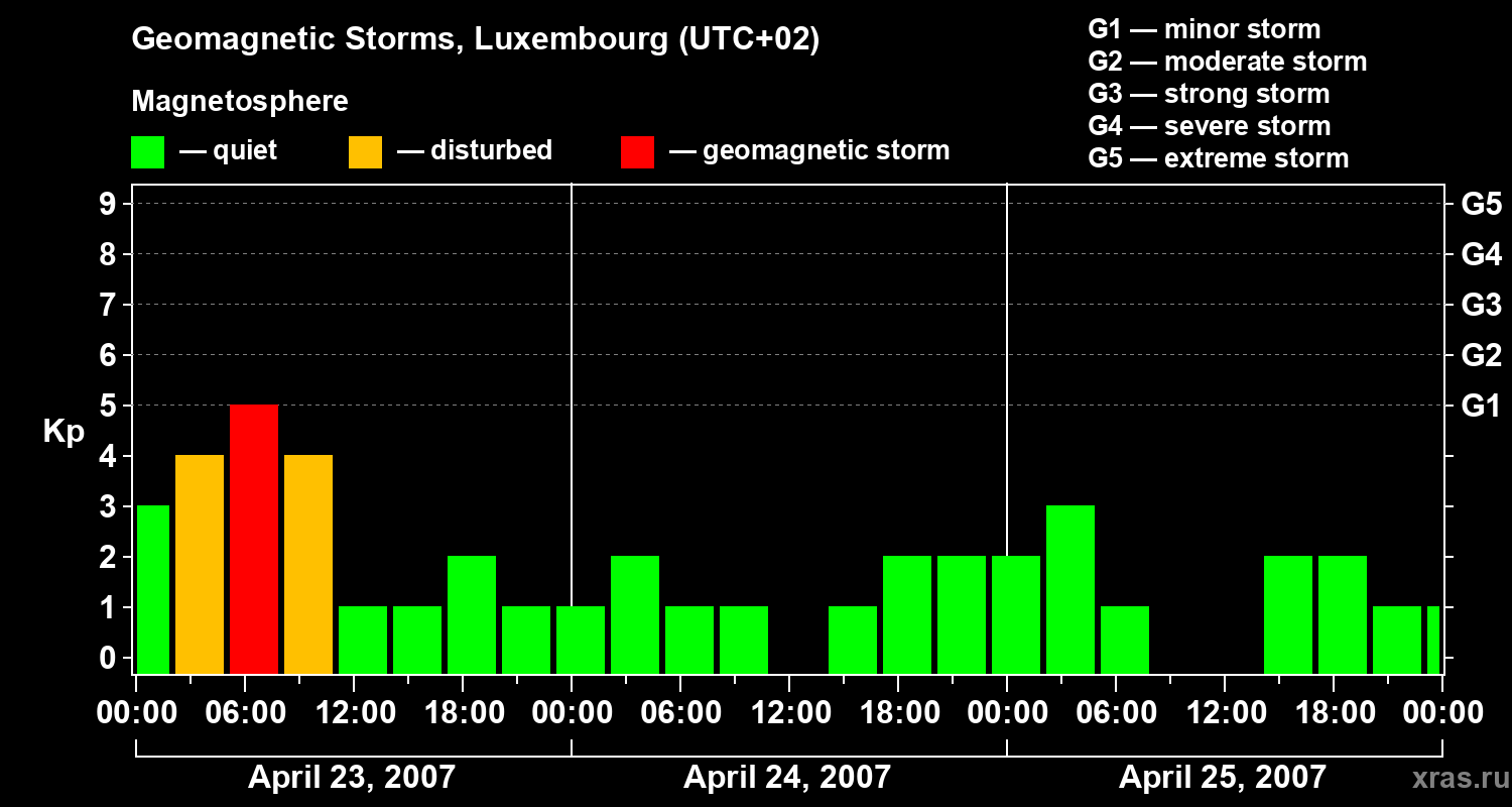Geomagnetic storms in Luxembourg on Apr 25, 2007