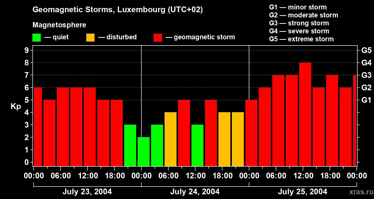 Geomagnetic storms in Luxembourg — Jul 25, 2004