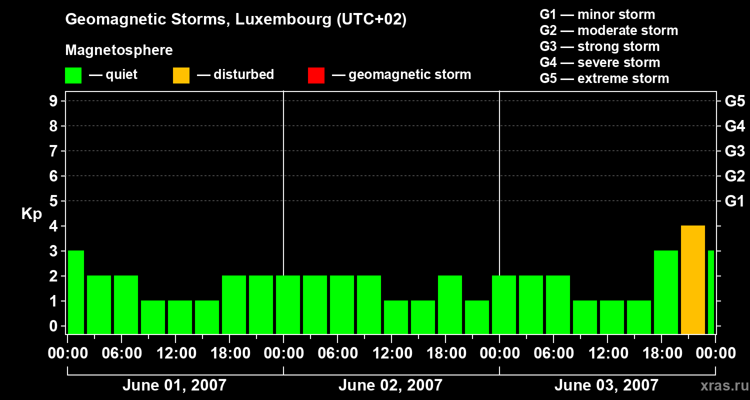Geomagnetic storms in Luxembourg on Jun 03, 2007