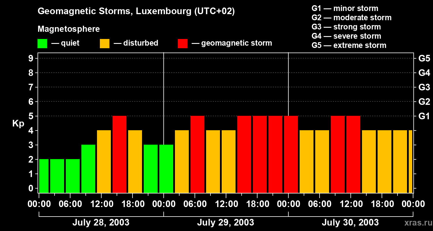 Geomagnetic storms in Luxembourg — Jul 30, 2003