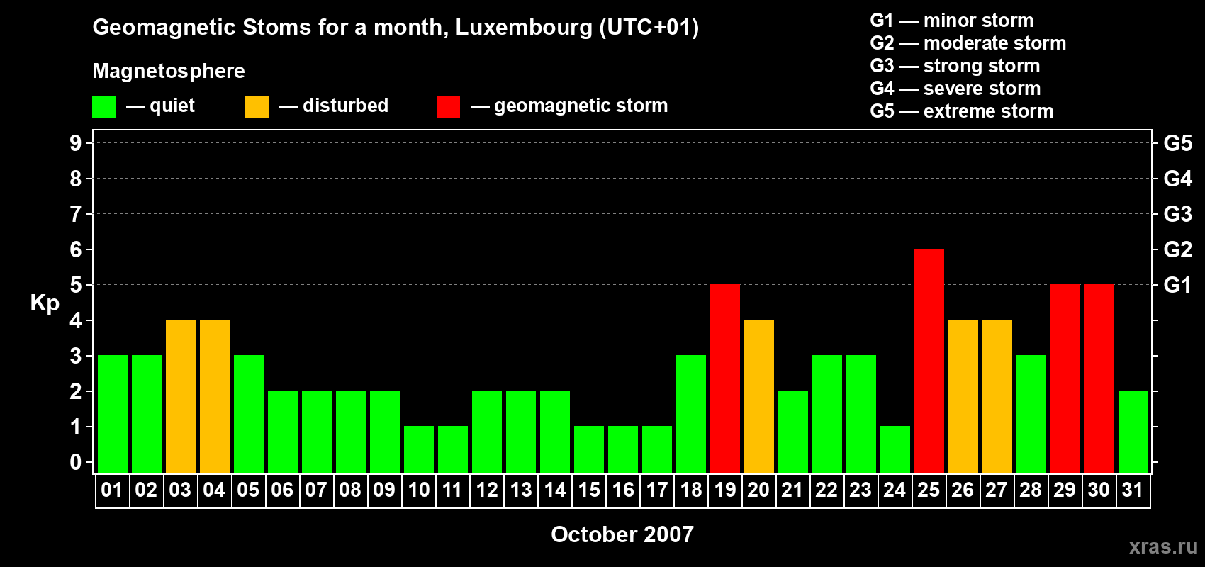 Geomagnetic storms in Luxembourg — Oct 31, 2007