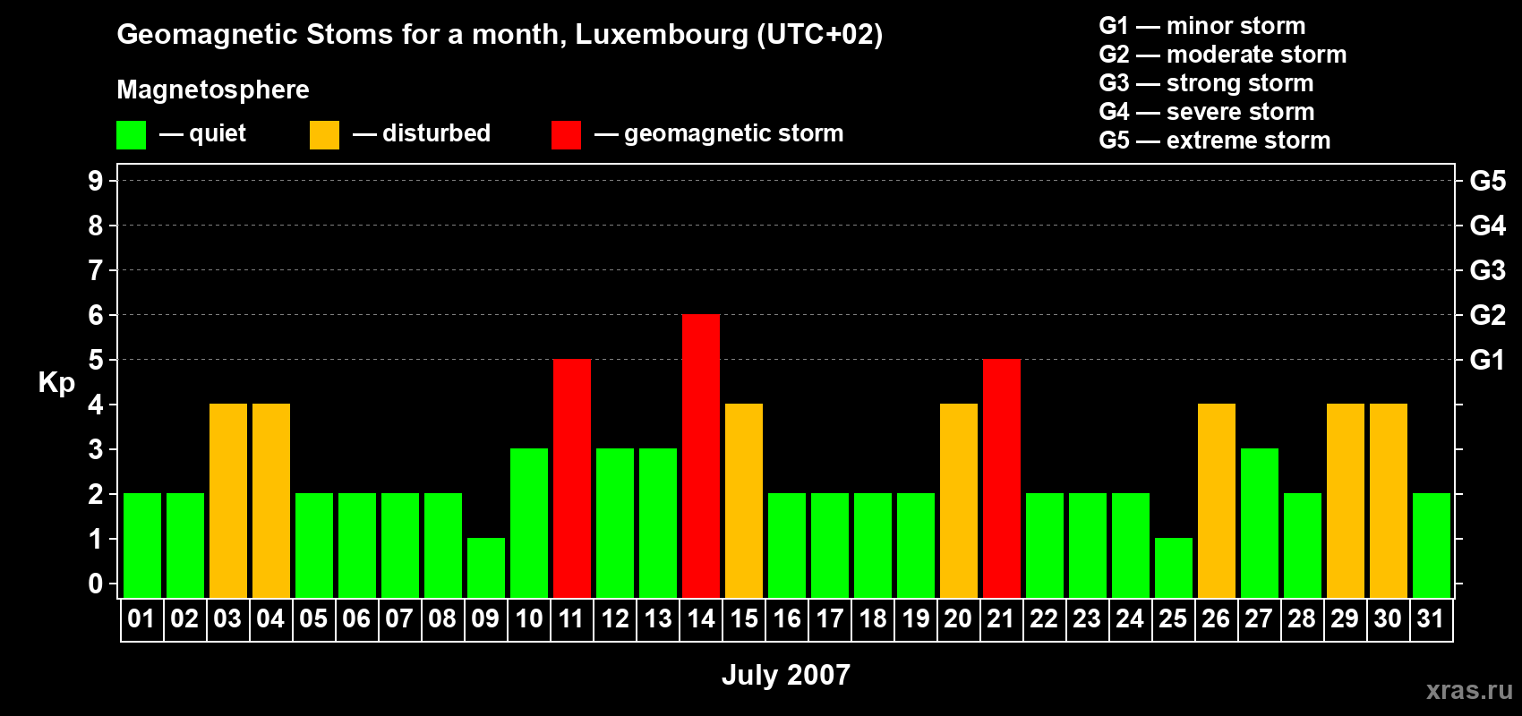 Geomagnetic storms in Luxembourg — Jul 31, 2007
