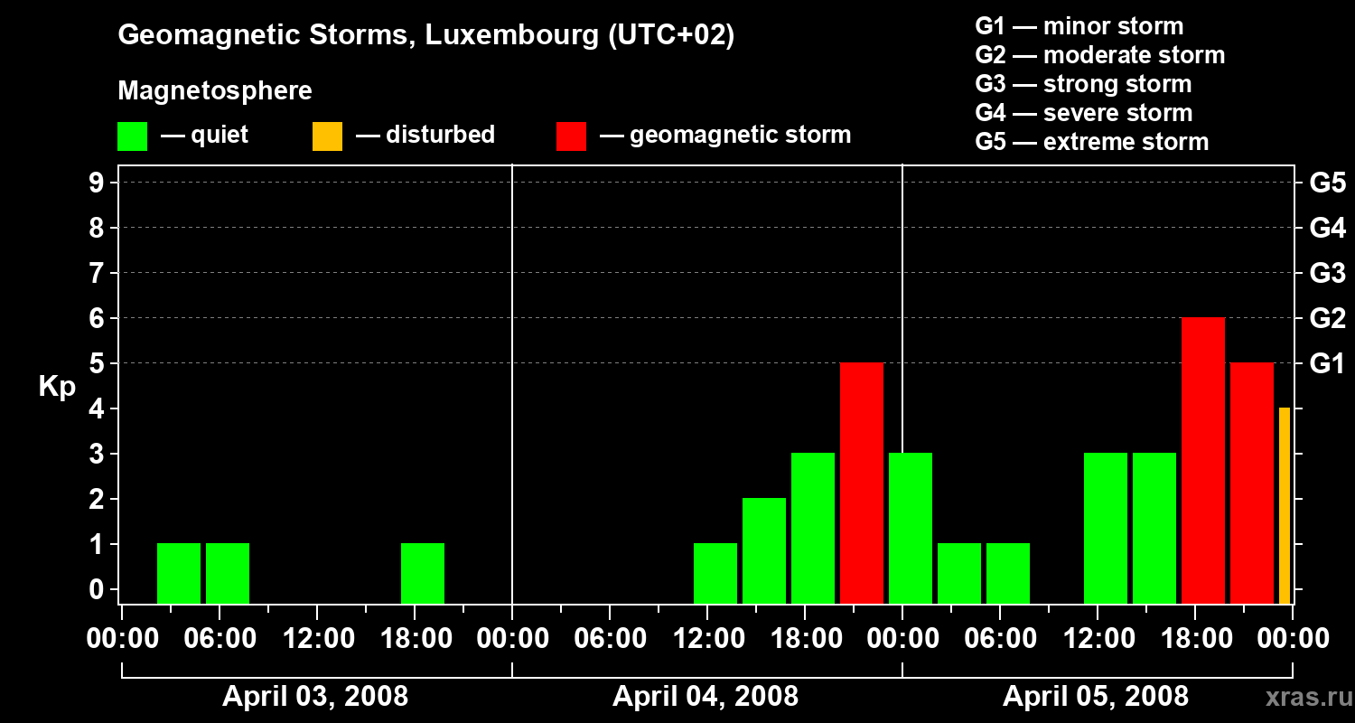 Geomagnetic storms in Luxembourg — Apr 05, 2008