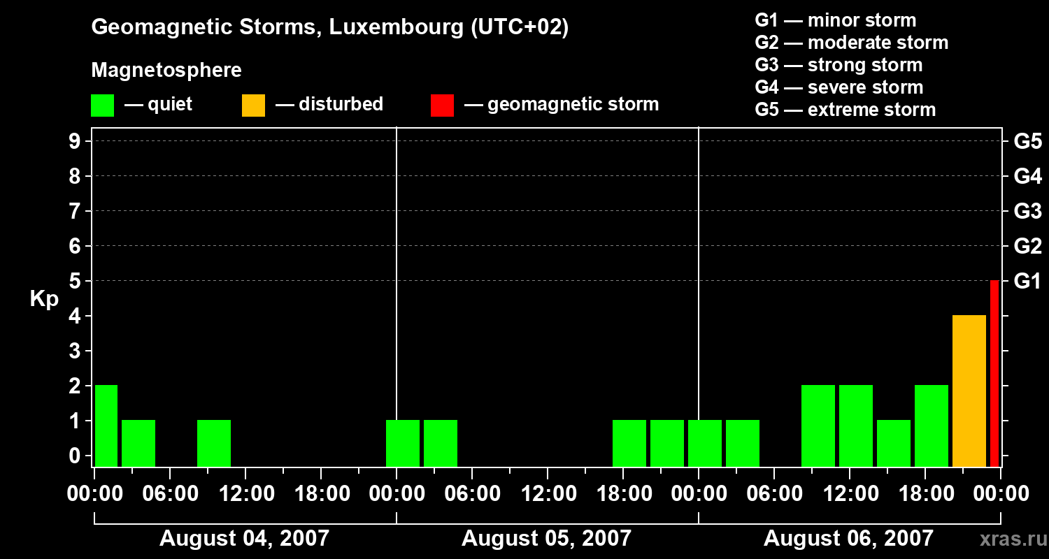 Geomagnetic storms in Luxembourg — Aug 06, 2007
