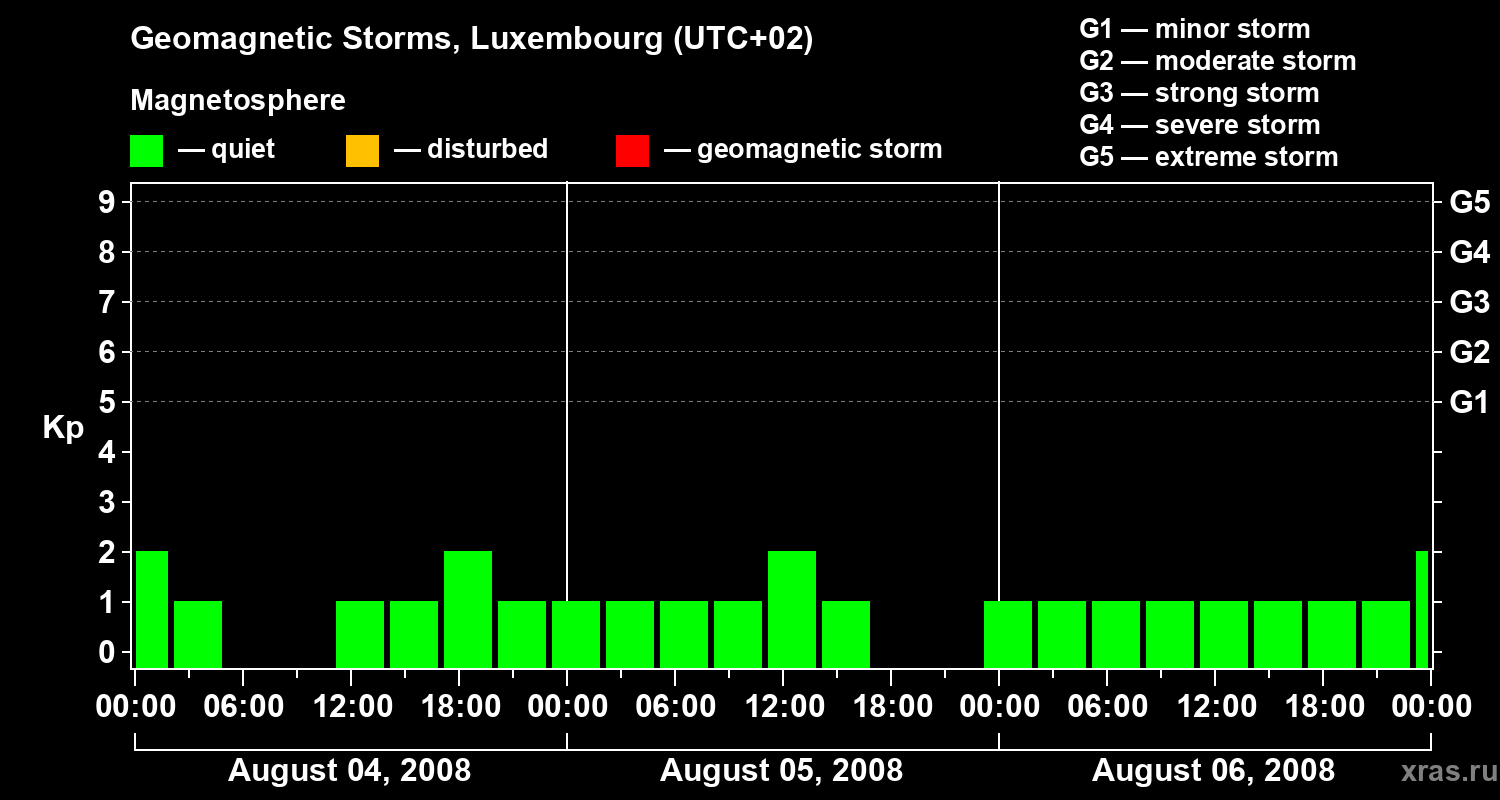 Geomagnetic storms in Luxembourg in August 2008