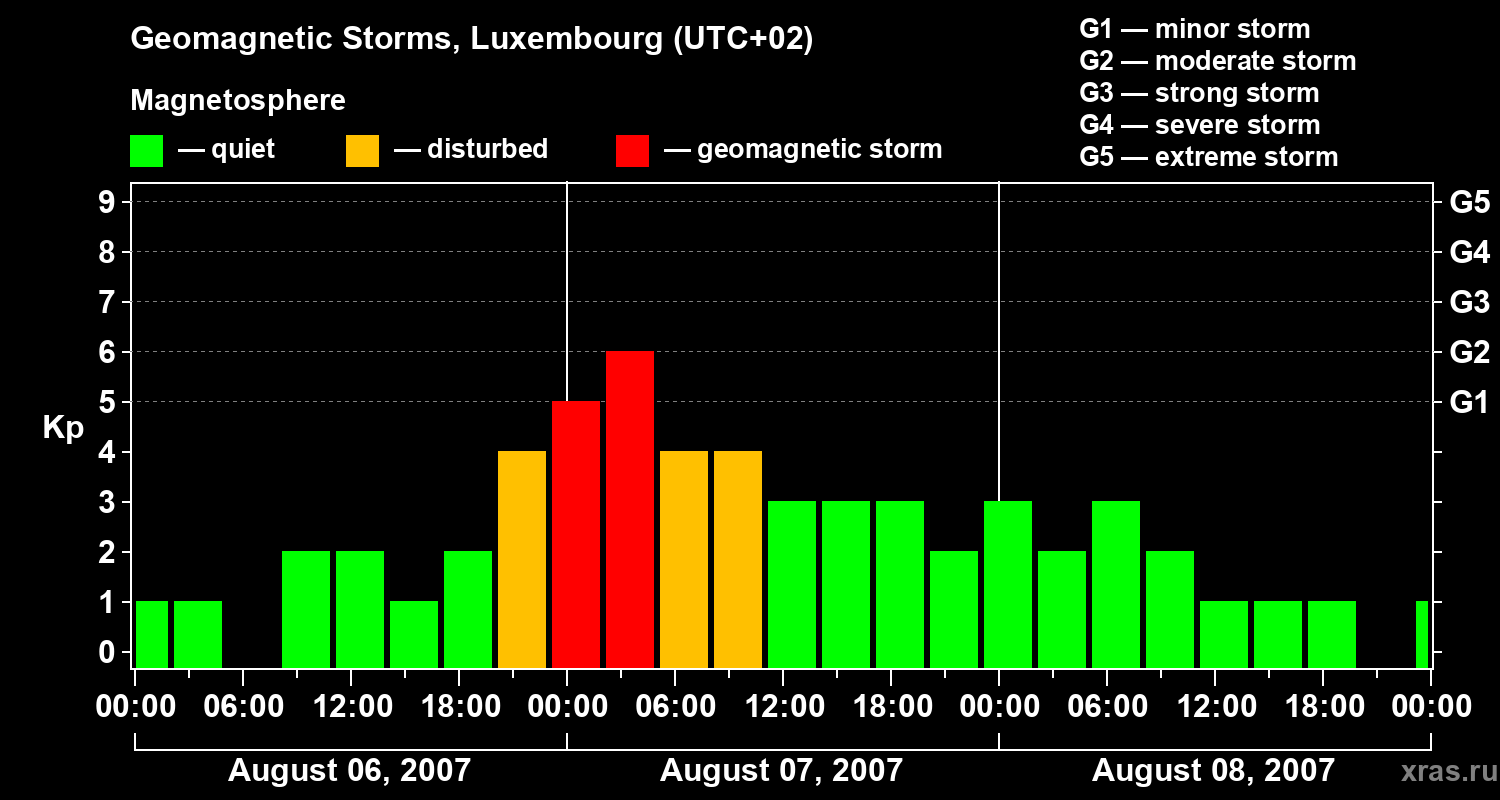 Geomagnetic storms in Luxembourg — Aug 08, 2007