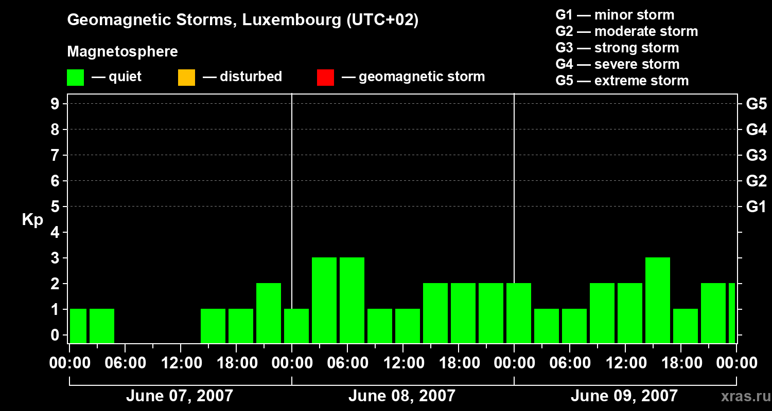 Geomagnetic storms in Luxembourg — Jun 09, 2007