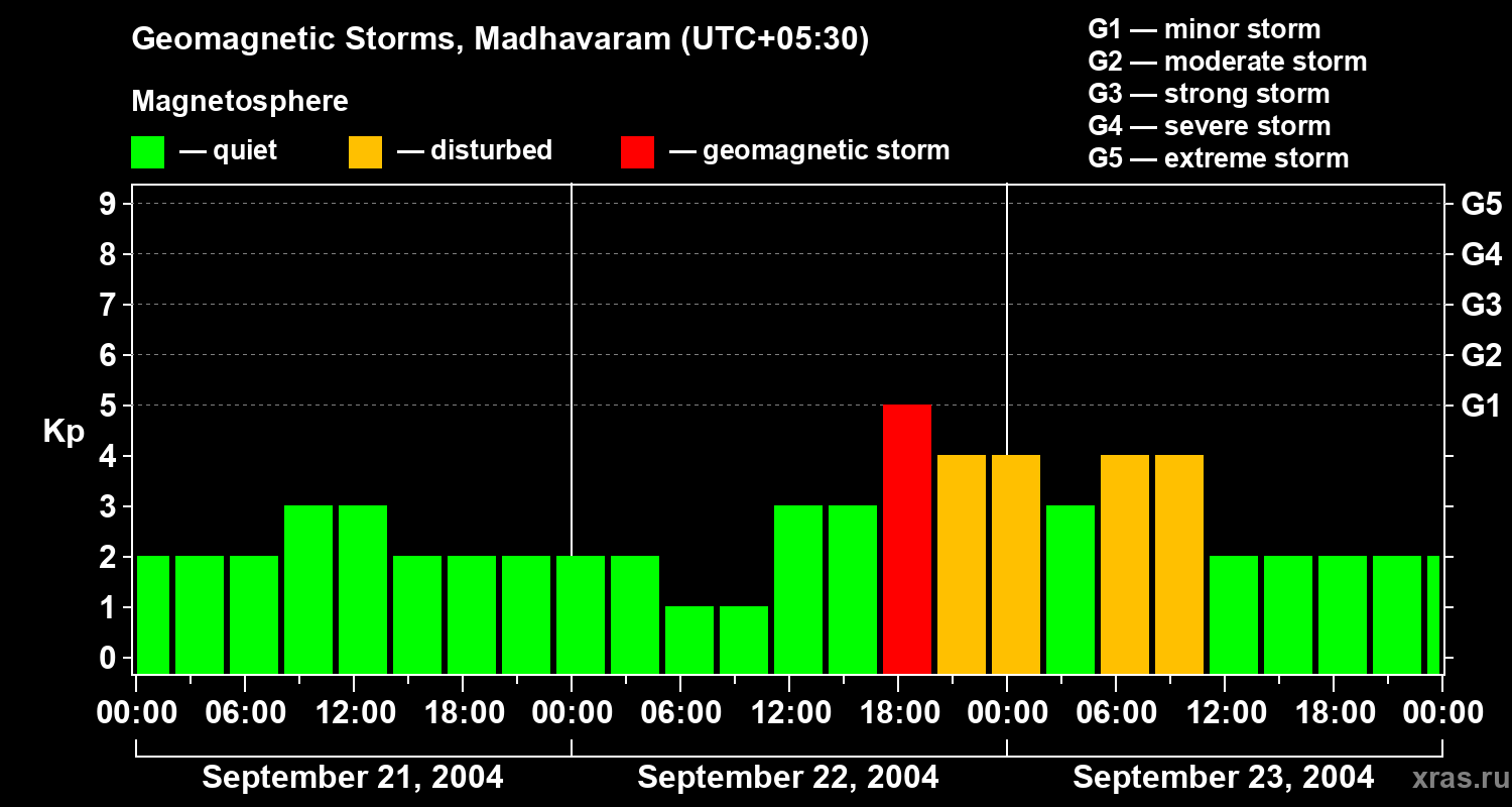 Geomagnetic storms in Madhavaram — Sep 23, 2004