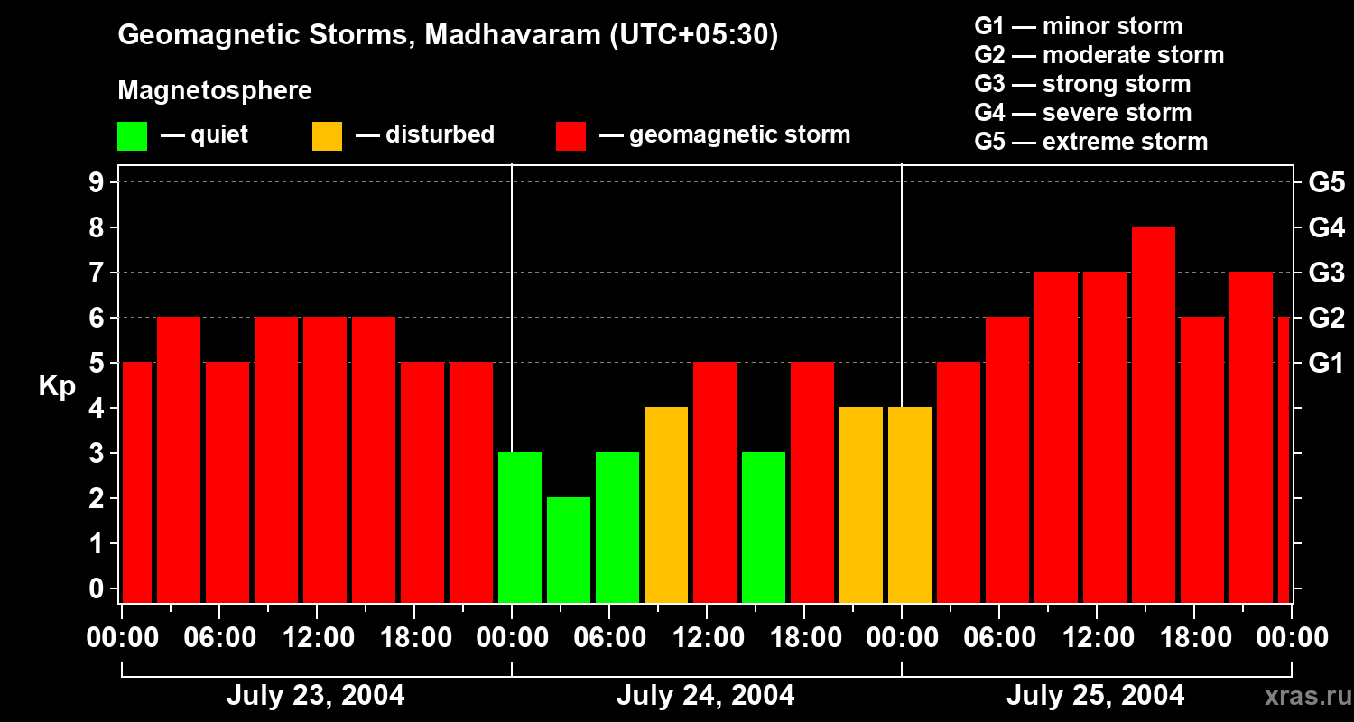 Geomagnetic storms in Madhavaram — Jul 25, 2004