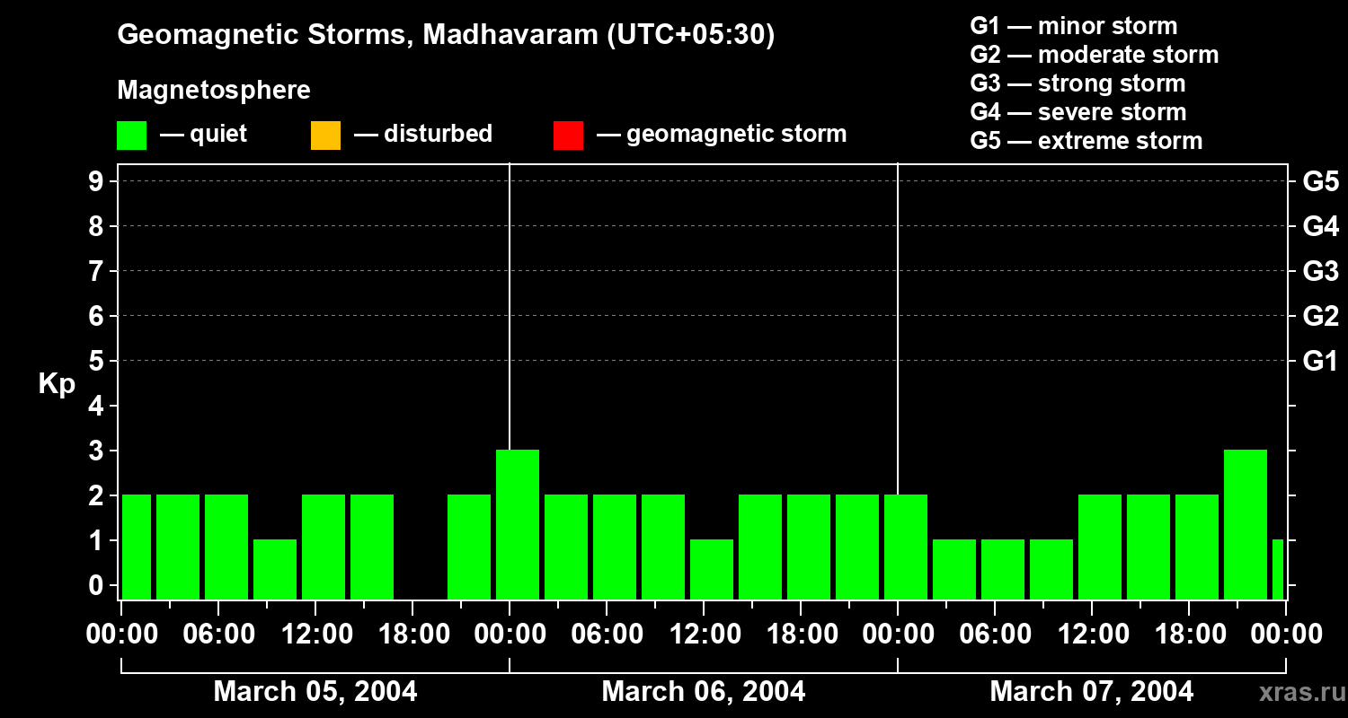 Geomagnetic storms in Madhavaram — Mar 07, 2004