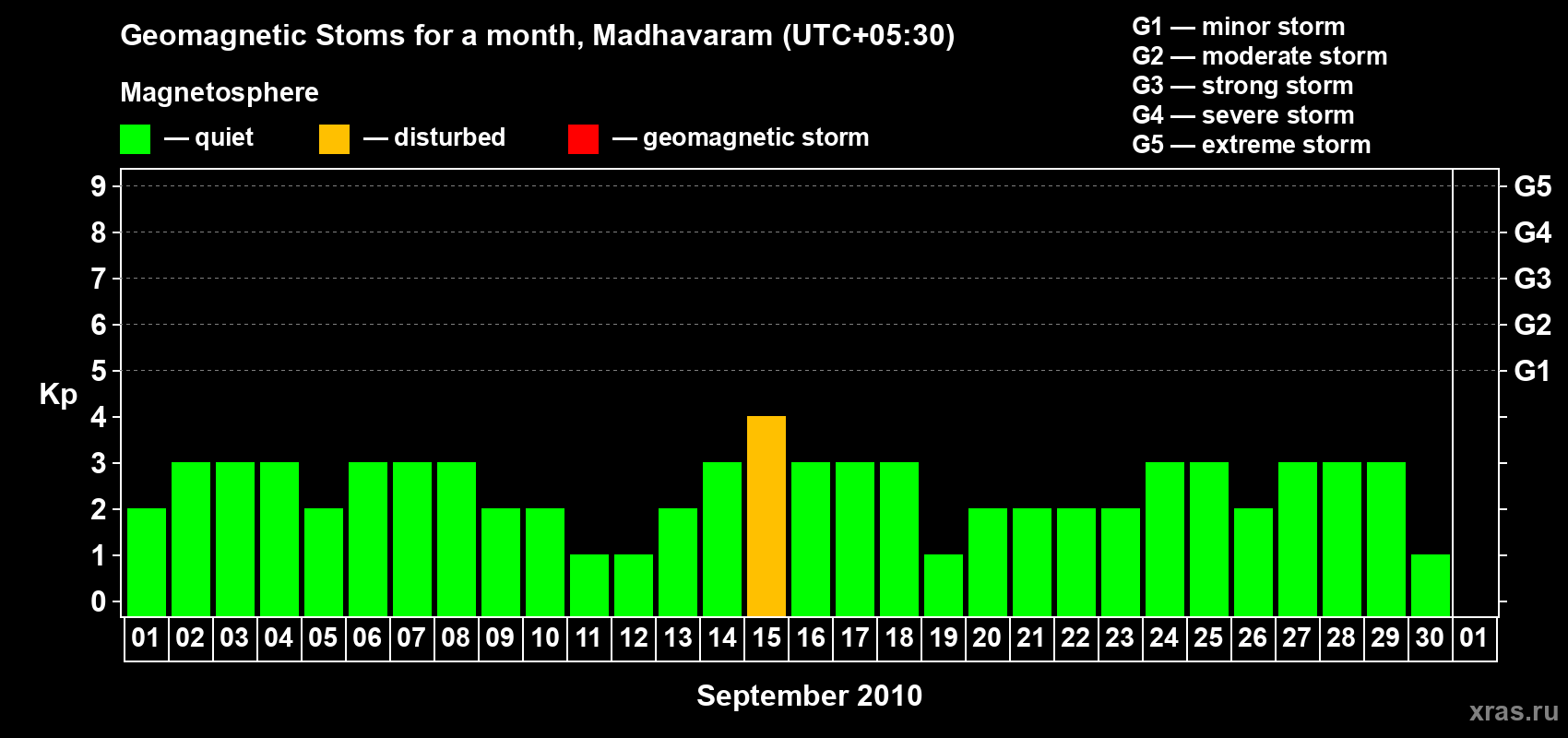 There were no days with an increased level of geomagnetic disturbance in September 2010