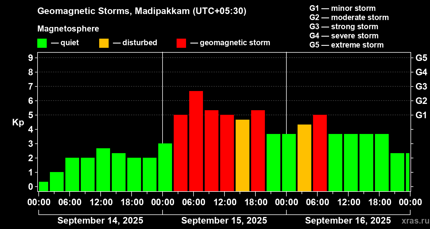 Geomagnetic storms in Madipakkam — Sep 16, 2025